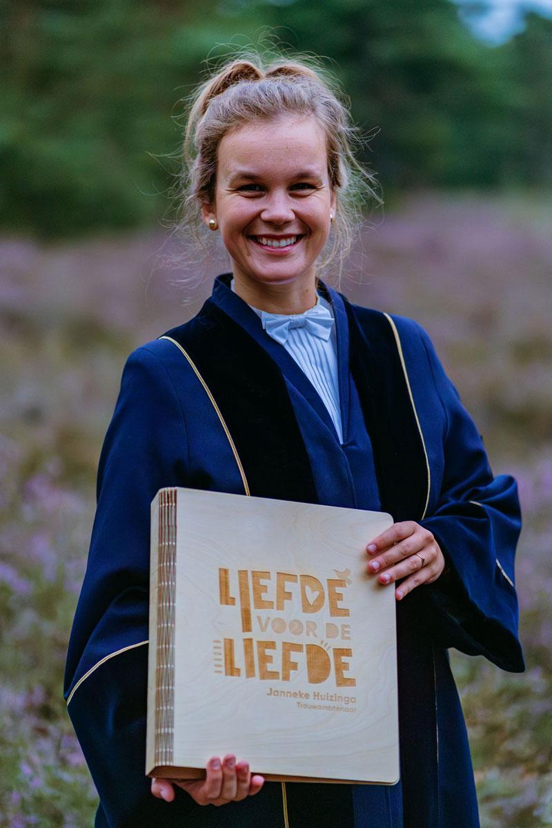 Mijn naam is Janneke, 32 jaar en woonachtig in het mooie Twente. Voor de liefde cross ik door heel Nederland.  Ik hou van liefdesverhalen en ik ben nu al benieuwd naar jullie versie van de liefde. Tijdens het proces dat we samen ingaan bespreken we ook jullie wensen voor de ceremonie. Misschien weten jullie al goed wat jullie willen of misschien helemaal niet. Beide helemaal goed: we hebben tijd genoeg om alles perfect vorm te geven samen. Ook leren we elkaar door alle gesprekken goed kennen. Dat is fijn want op de mooiste dag van jullie leven is een bekend gezicht héél erg fijn. En hebben jullie kinderen? Ook daar heb ik genoeg ideetjes voor om ze te betrekken bij de ceremonie.